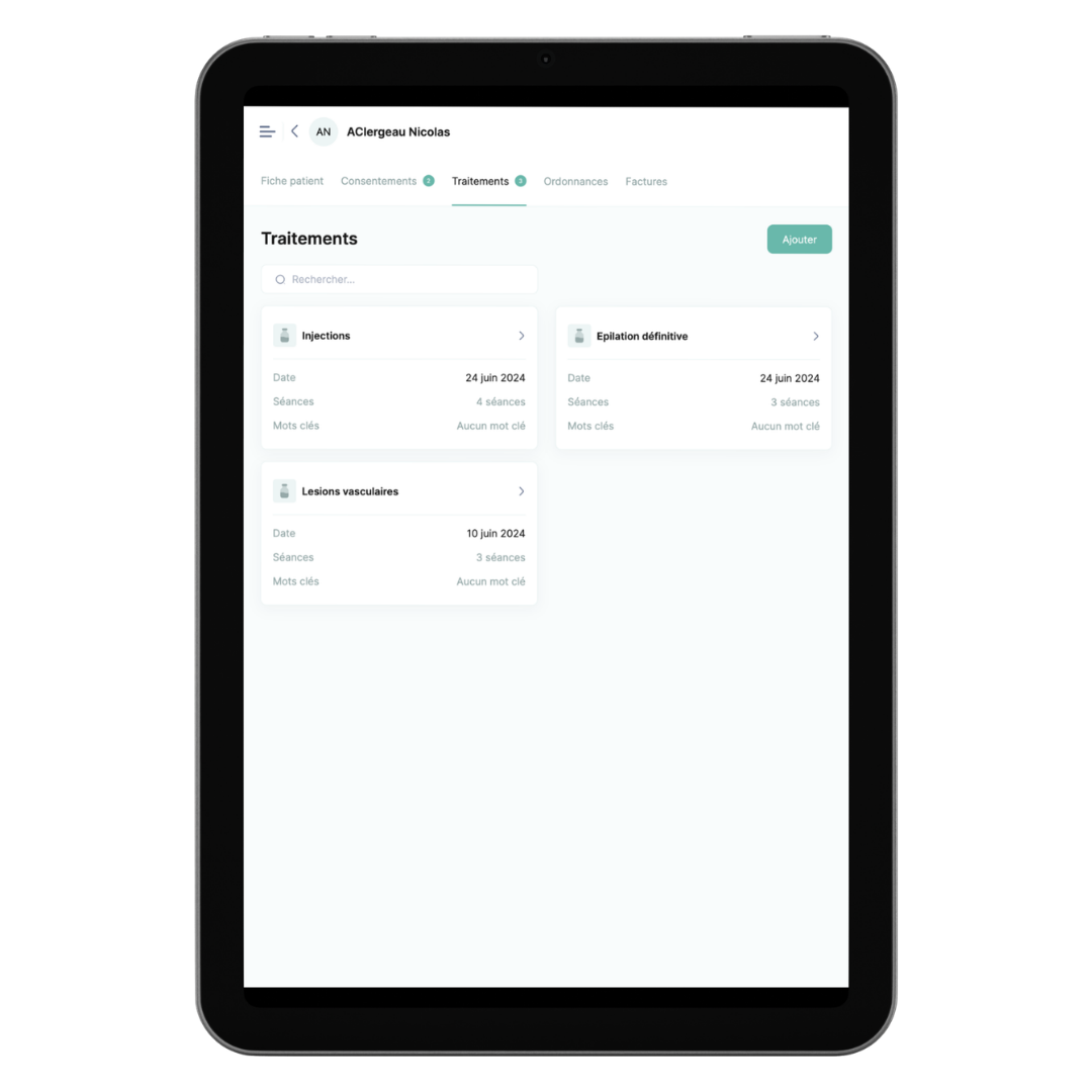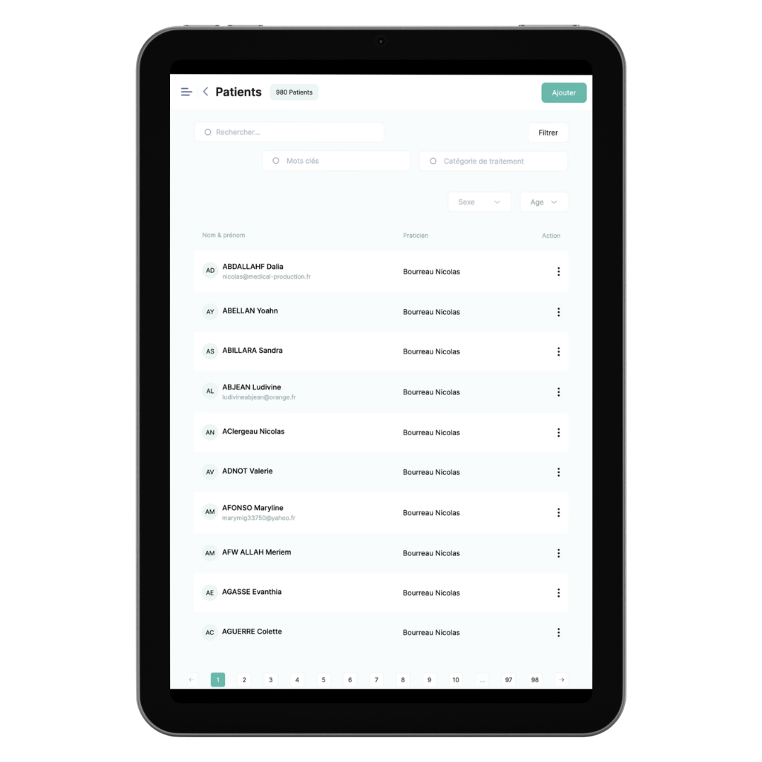 Tous vos patients, dossiers et traitements réunis en un seul endroit.