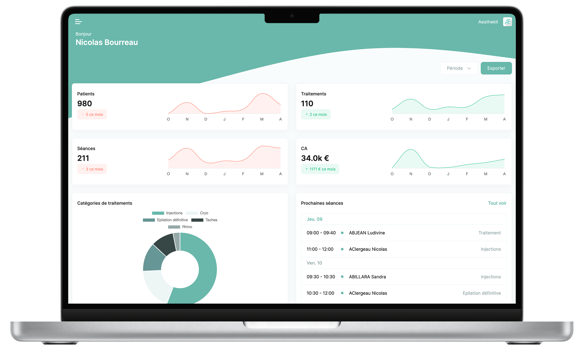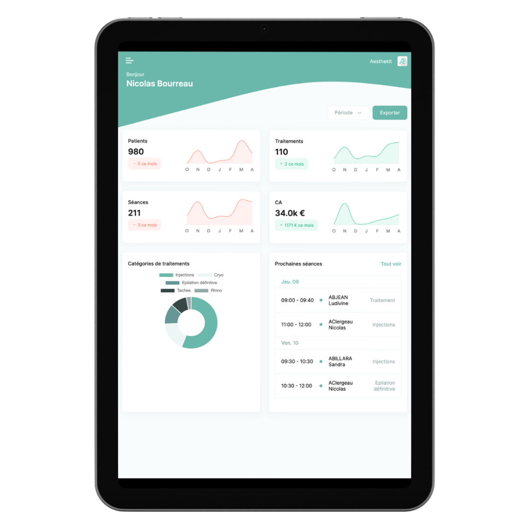 Aesthekit réinvente la gestion médicale pour les professionnels de l’esthétique avec une solution innovante qui marie simplicité et performance. Conçu par des experts en dermatologie, médecine et chirurgie esthétique, notre outil optimise votre pratique grâce à des fonctionnalités essentielles.